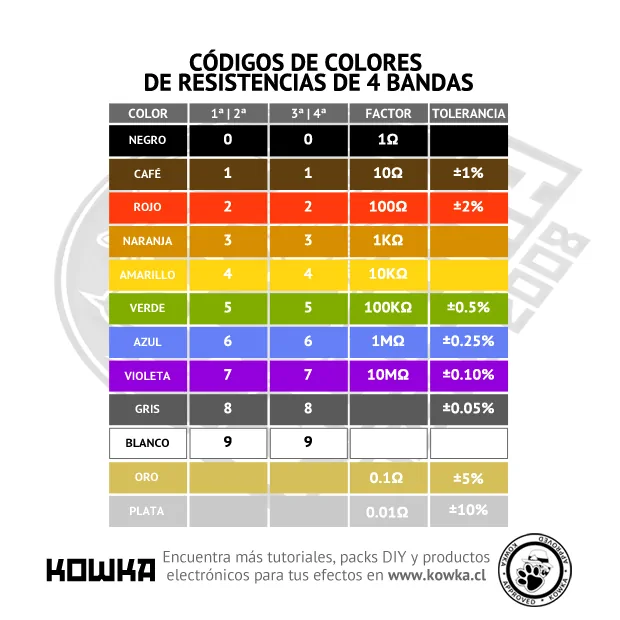 Para poder obtener con facilidad el valor de la resistencia se utiliza el código de colores, que se interpreta de la siguiente manera: