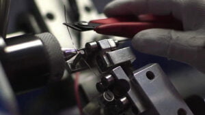 Esto ya es para expertos, pero si te interesa saberlo, los hilos constan de un núcleo y una capa de envoltura. Los núcleos se fabrican cortando alambre de forma hexagonal a la medida y girando un extremo con una forma específica y número de torsiones para sujetar un extremo de bola. Una vez hechos, los núcleos se cargan en máquinas bobinadoras que hacen girar el núcleo mientras colocan un devanado constante de alambre envolvente alrededor del núcleo.